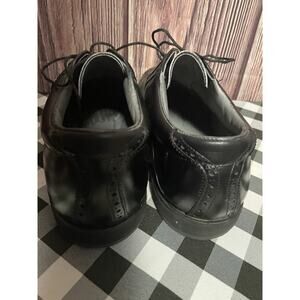 The FootJoy Classics Men’s 10.5 D Hand Crafted Leather Golf Shoes are a vintage-inspired pair of lace-up sneakers perfect for both activewear and casual occasions. Made with high-quality leather, these shoes feature a solid black color with a durable outsole and lining material. Designed specifically for golfing, these spikeless shoes offer comfort and performance on the course, making them a great addition to any golfer's wardrobe. Crafted by FootJoy, a trusted brand in golf footwear, these classic shoes showcase a timeless design and are perfect for the summer, fall, and spring seasons.