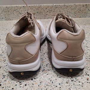 FootJoy Contour Series 94149 Womens Size 9 White/Tan Soft Spikes Golf. Pre-owned Good condition