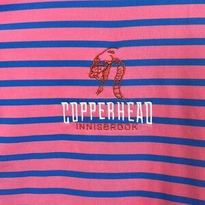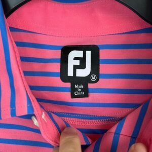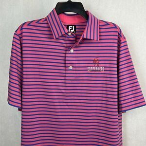 FootJoy Copperhead Innisbrook Polo Shirt Sz Medium Pink Blue Stripe Short Sleeve