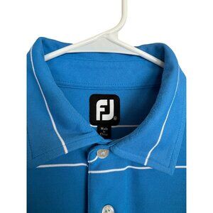 FootJoy FJ Golf Polo Shirt Sky Blue White Stripes Back Logo Mens XL Polyester C1