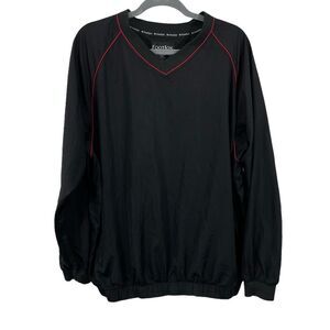 FootJoy FJ Golf Pullover Black with Red Trim Windbreaker V-Neck Men's Size LARGE in great condition