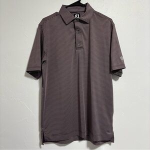 FootJoy FJ Men Golf Polo Short Sleeve Striped Size Medium Gray Red Embroidered