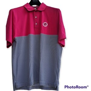 FootJoy FJ Men's Pink Striped Pattern Polo Golf Shirt World Woods Golf Club Patch Size Large Polyester Blend