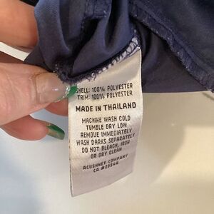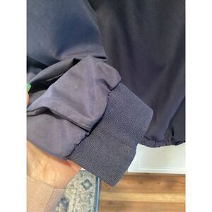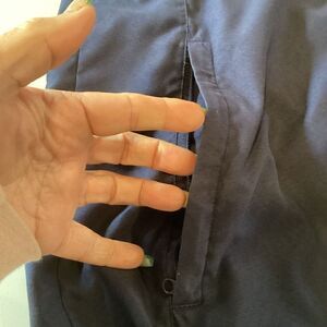 In good condition no issues see measurements in pics snap closure 2 side zip pockets, elastic hem