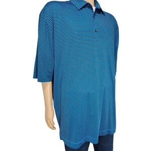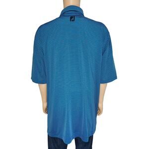 FootJoy FJ Polo Shirt Mens 2XLarge XXL Blue Black Striped Short Sleeve Golf EUC