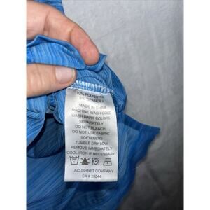 The FootJoy Men's L Turquoise Blue Vinoy Club Golf Polo Shirt is a stylish and high-performance piece of golf clothing perfect for any season. Made with 100% polyester, this geometric blue polo features a spread collar, short sleeves, and a button closure. The athletic fit and Comfort product line ensure maximum comfort and flexibility on the golf course, while the geometric pattern adds a touch of style. Perfect for any golf enthusiast looking for a quality shirt to enhance their game whether you’re playing the course at the country club in St. Petersburg or just wearing it to work.