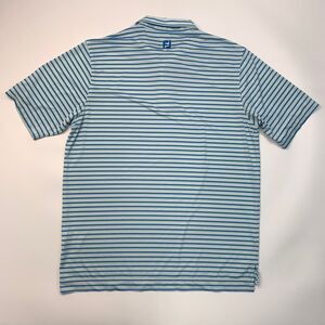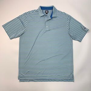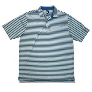 FootJoy FJ Shirt Men XL Extra Large Baby Blue Striped Stretch Shirttail Hem Polo