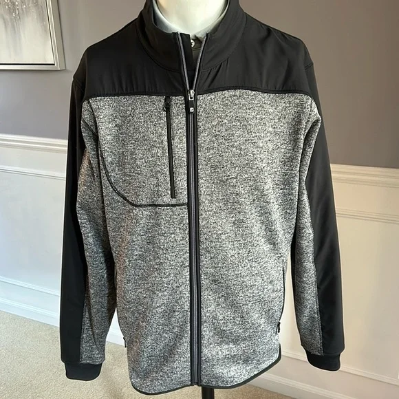 Size Small. Black and charcoal. Full zip. Great condition!! Great on and off the course.