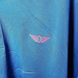 FootJoy Golf Polo Shirt Mens 2XL Blue Pink Trim FJ Logo Performance Stretch