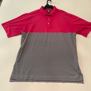 FootJoy Golf Polo Shirt Men’s XL Pink & Navy Striped Performance Stretch