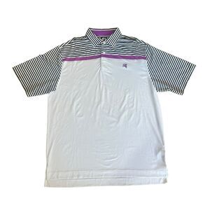 FootJoy Golf Polo Shirt Mens XL White Blue Purple Striped BCC Logo
