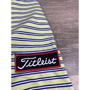 FootJoy Golf Shirt Polo Titleist Logo Patch Large Green Striped Polyester