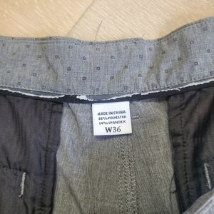 pre-loved, gently used, good condition. Poly/spandex blend, button/zip closure, slash pockets, back pockets