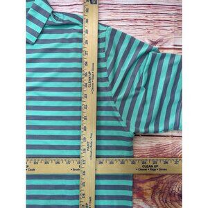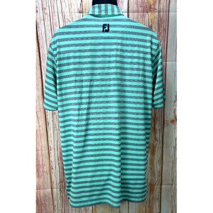 Stylish FootJoy polo with green and black stripes. Comfortable fit. Perfect for casual wear. Can’t wear it because of the size