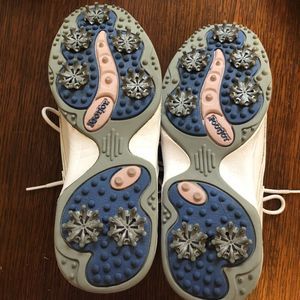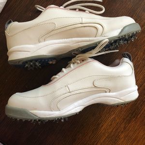 FootJoy GreenJoys Womens Golf Shoes Sz 8.5M White Leather Pink Soft Spike 48703