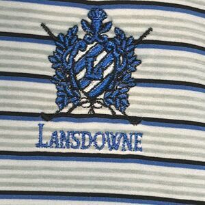 FootJoy Lisle Multi Stripe Self Collar Grey Polo - Grey/Royal/Black/White Style# 26223 size Large Landsdowne