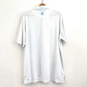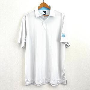 FootJoy Men Golf Polo Shirt Sz Large White Blue Dot Performance Moisture Wicking