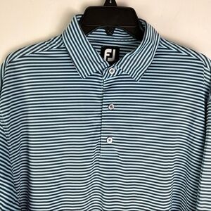 FootJoy Mens Golf Polo Shirt Blue Striped Stretch Button Short Sleeve Collared L