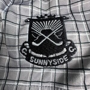 FootJoy Men's Large Gray Plaid Polo Shirt Sunnyside Country Club Sleeve Logo