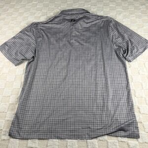 The FootJoy Men's Large Gray Plaid Polo Shirt with the Sleeve Logo from Sunnyside Country Club is a stylish and comfortable option for casual occasions. Made from polyester, this short sleeve shirt features a collared neckline and button closure, making it both practical and fashionable. The regular fit and spread collar style offer a classic look, perfect for the summer, fall, or spring seasons. Ideal for a day out on the golf course or simply relaxing in style, this polo shirt is a versatile addition to any man's wardrobe.