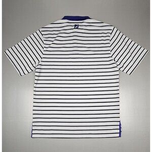 Elevate your golf game with this FootJoy Men's Golf Polo Shirt in size medium. The shirt features a stylish striped pattern with a collared neckline and short sleeves, perfect for a day out on the green. The shirt is made of a comfortable blend of polyester and spandex, making it both machine washable and easy to wear.