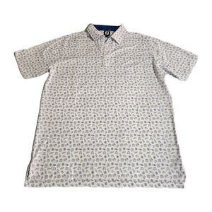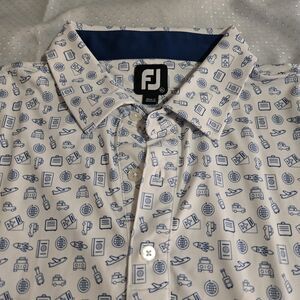 FootJoy Mens Medium White Blue Work Travel AOP Performance Golf Polo Shirt XL