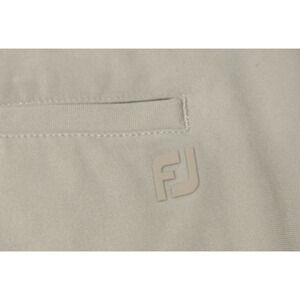The FootJoy Performance Stretch Flat Front 10" Inseam Beige Golf Shorts in size 38 are designed for casual occasions with a high-rise fit and a 10-inch inseam. Made from a polyester/spandex blend fabric, these shorts feature embroidered FJ logo buttons and logo buttons for style accents. They also come with button back pockets, performance stretch fabric, and are machine washable. Perfect for any season, these shorts are ideal for men who enjoy playing golf or simply want comfortable and stylish clothing for everyday wear.