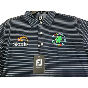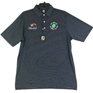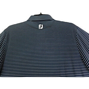 FootJoy ~Men's Size L~ Black/White Striped Golf Polo Shirt Logo, Polyester NWT