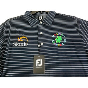 Elevate your golf wardrobe with this stylish FootJoy polo shirt. Designed with a classic black and white striped pattern, this shirt is perfect for both on and off the course. The shirt features a button-down collar and short sleeves, making it ideal for summer, fall, and spring seasons.