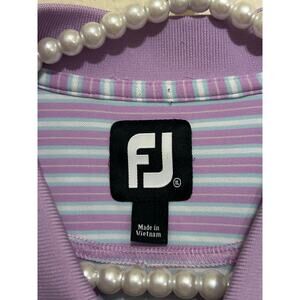 FootJoy Mens Size XL Golf Dri-Fit Polo Purple Blue Striped Short Sleeve Shirt