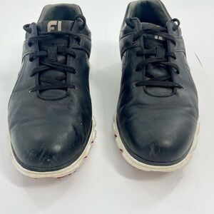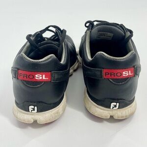 FootJoy Men's Pro/SL Spikeless Golf Shoes Black White Low Top Size 9.5 Preppy classic. In very good pre-owned condition. Minor scuffs on the toes see photos. Lots of life left.