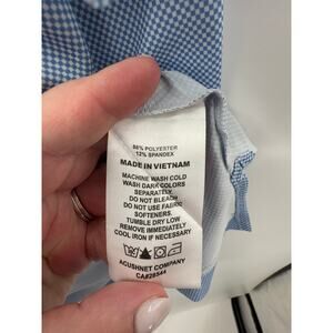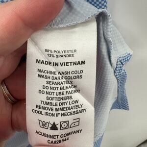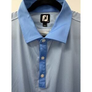 Stay cool and comfortable on the course or off with this FootJoy Men's Polo Shirt in size XL. Designed in a stylish blue and white checkered pattern, it features short sleeves and a flexible poly/spandex blend for easy movement – perfect for golf or active casual wear.