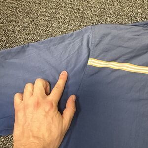 This FootJoy polo shirt is perfect for any golf enthusiast looking for a comfortable and stylish option on the course. The blue striped shirt features a logo accent and is made with stretch material for ease of movement during your swing. It is available in men's size XL and is a regular fit.