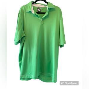 FootJoy Polo Shirt Mens XL Athletic Fit Lime Green Short Sleeve Preppy Golf Polo