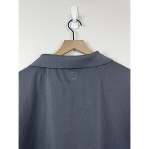 The FootJoy ProDry Performance Pique Stretch Golf Polo Shirt is a men's collared pullover with short sleeves and a relaxed fit. It is made of a polyester blend knit fabric with a solid gray color and features a buttoned point collar and a FootJoy logo. The shirt is machine washable and suitable for all seasons. It is designed for golf performance and is part of the Summer Comfort product line.