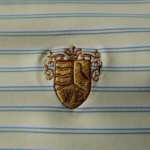 Soft Yellow Blue WB Striped Performance Stretch Polo (L)