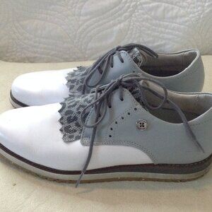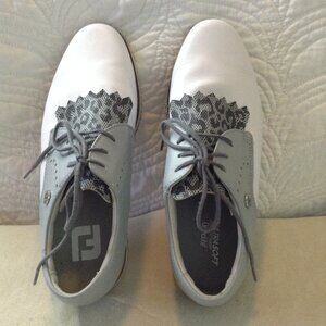 FootJoy Sport Retro Kiltie W Golf Shoes, 7M; Gray and Leopard print, Waterproof. Style #92395, Very Gently Pre-Loved, No visible wear; Looks Un-Used.