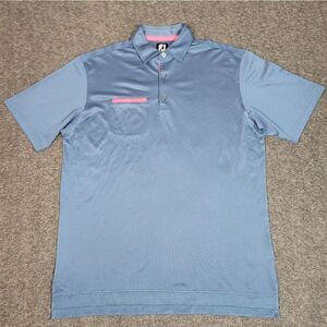 FootJoy Men's Golf Shirt Size L Blue Performance Polo With Pink Chest Pocket