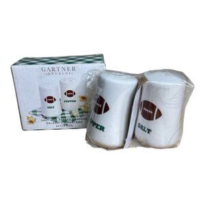 Football Ceramic Salt & Pepper Shakers Gartner Studios 3” NIP