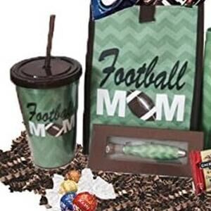 Show your mom you appreciate her unwavering sideline support with this football-themed gift set. Includes: Insulated lunch tote, large cup with straw, planner, pen, assorted chocolates and snacks.