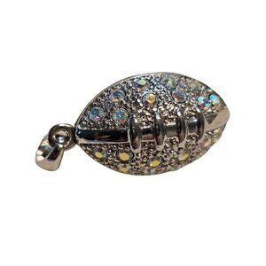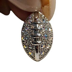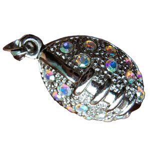 Football Charm Rhinestone Embellished Nice Detail Sliver Tone 1 inch