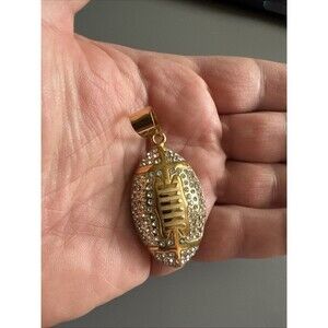Football Pendant Chain Stainless Steel Super Bowl Gift Men’s Cubic Zirconia Gold