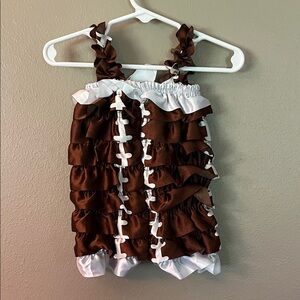 Adorable brown and white ruffled one piece for kids. Perfect for Football season! Perfect for any occasion with its charming design.