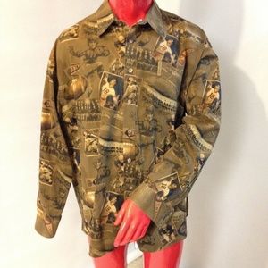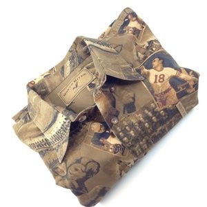 Good used condition. Please view all photos. Super cool unique vintage football print long sleeve button down shirt. In good condition and ready for those fall tailgate parties.”