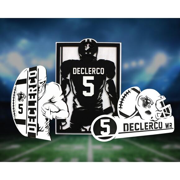 Our Stadium Series signs are now available and are ready to be customized with your name, number, position and even team logo. Choose from one of our 3 unique designs. Our Stadium Series signs will make a perfect gift for that special sports enthusiast that is passionate about the big game. Our designs can be ordered in a number of stains and finishes.