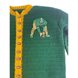 Lovely hand crocheted Green and Yellow Football / Cheerleading Sweater