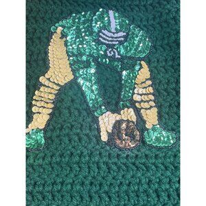 Football Sweater XXL Kelly Green Yellow Sequins Handmade Crochet OOAK Packers