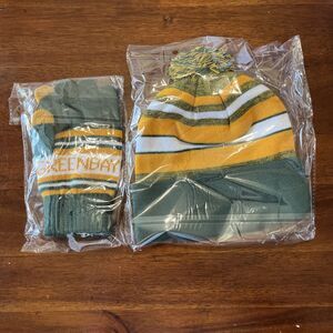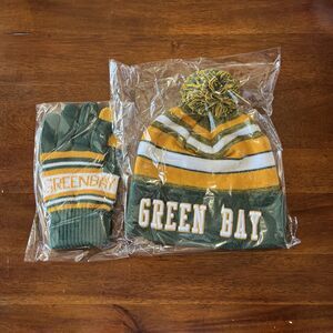 Football Team Green Bay Packers Unisex Winter Hat Beanie Pom & Gloves Set New