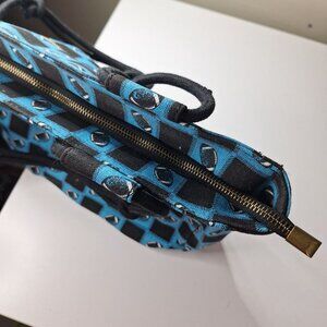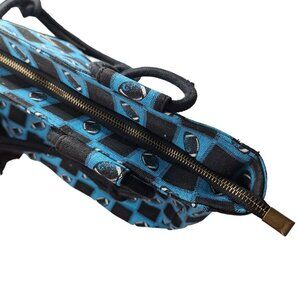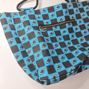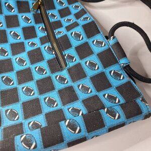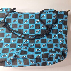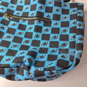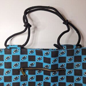 Football Tote Bag Purse Rope Handles Canvas Blue Black Zipper Farmhouse Style