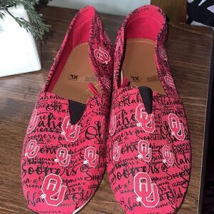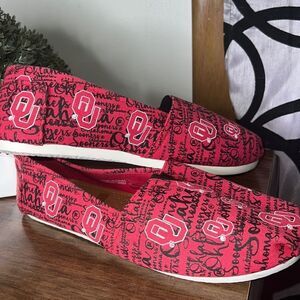 Football Women's Script Canvas Shoes Slide Slip On Flats New Oklahoma XL 11/12
